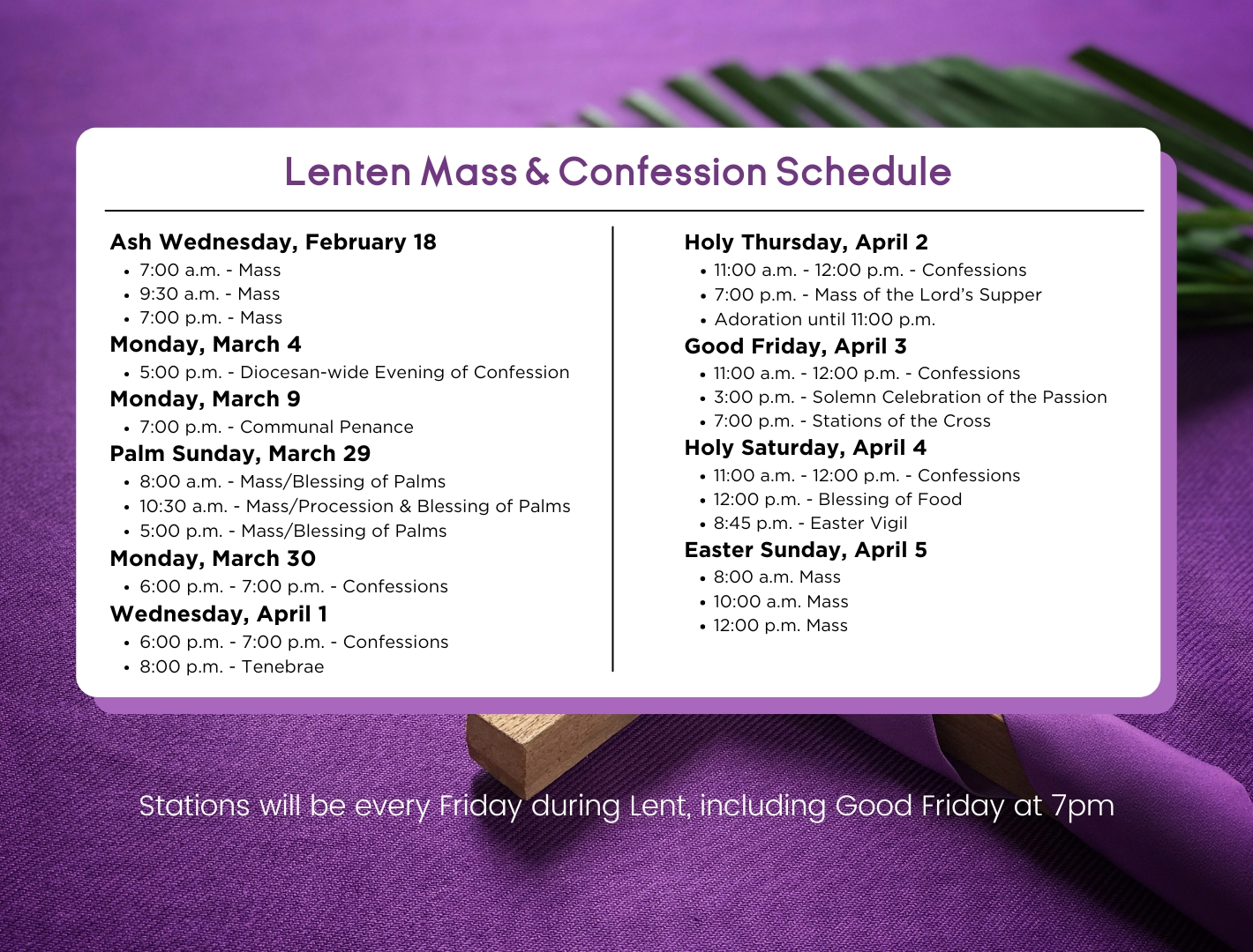 Attend any of our Sunday Mass times and discover the Truth, Beauty and Goodness of the Catholic Faith.
